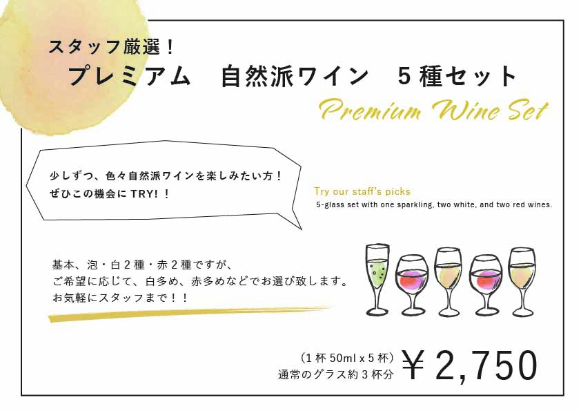おまかせ自然派ワイン5種飲み比べ